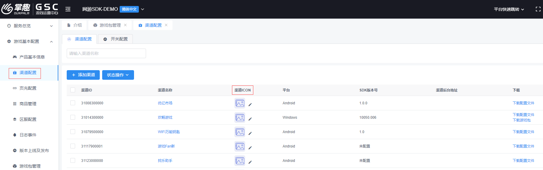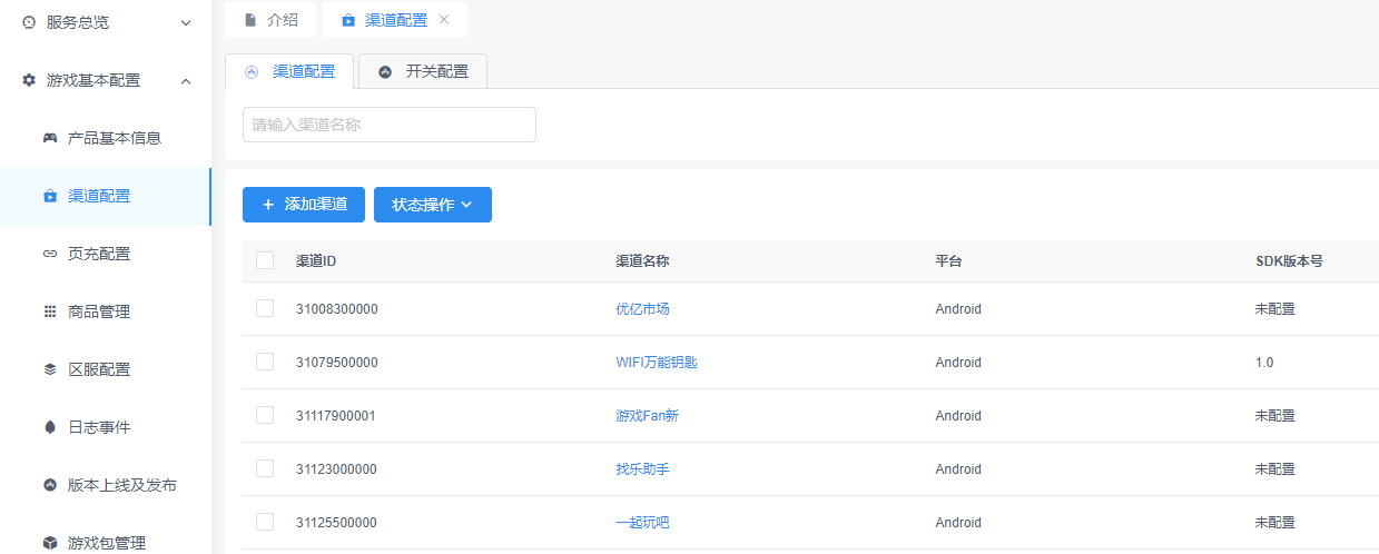 b. 游戏运营在DEV运营管理平台完成渠道添加和渠道相关参数配置