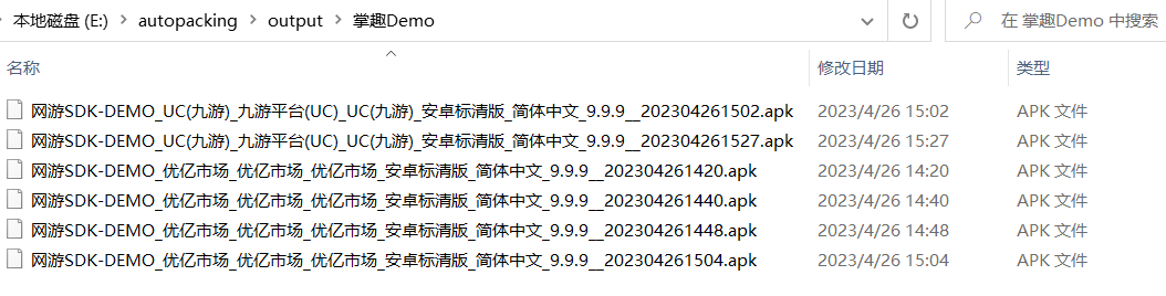 a. Windows环境:打包工具打出的游戏包支持配置输出路径,如果不选择会输出到默认路径下,即E:/autopacking/output/;