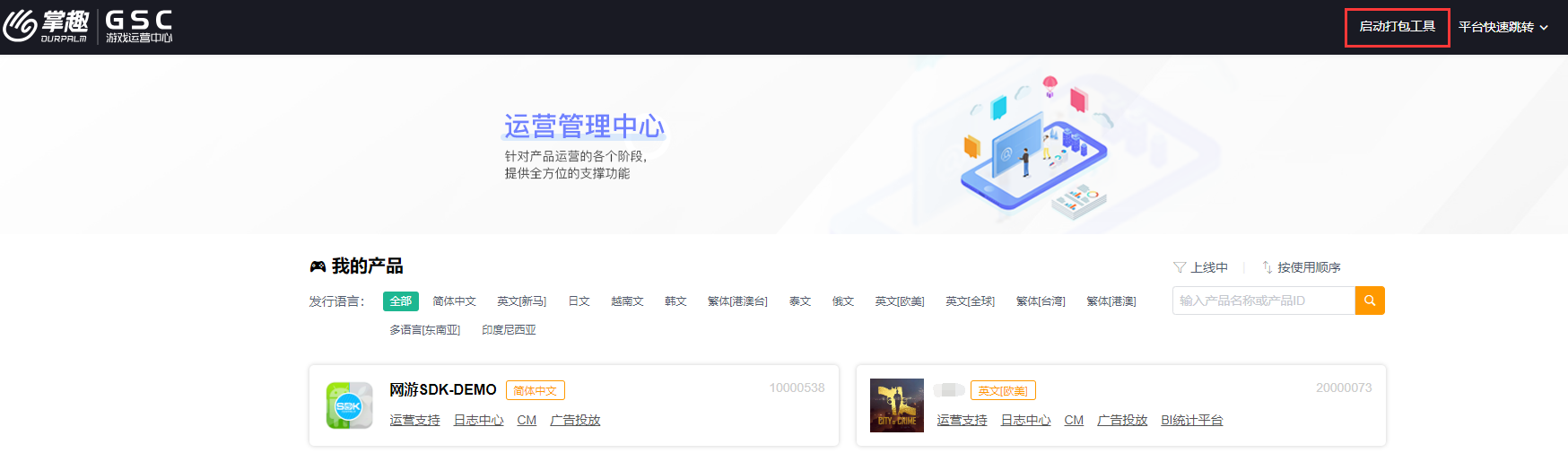 掌趣打包工具依赖技术支撑中心DEV运营管理平台进行渠道参数配置,需要登录平台账号使用。