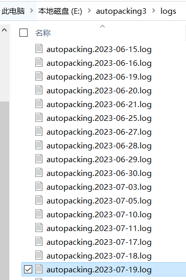 b. Windows系统log查看路径:电脑E盘->autopacking3->logs->对应日期的日志