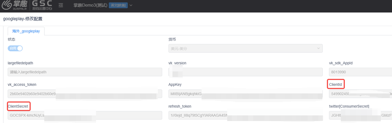 google登录用参数。