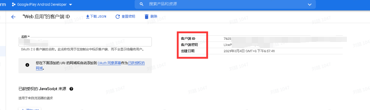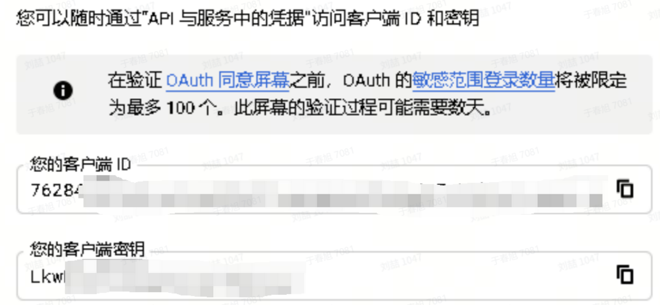 用途:用于向 Google 的 OAuth 服务器标识单个应用。如果您的应用在多个平台上运行,那么每个平台都需要有自己的客户端ID。
