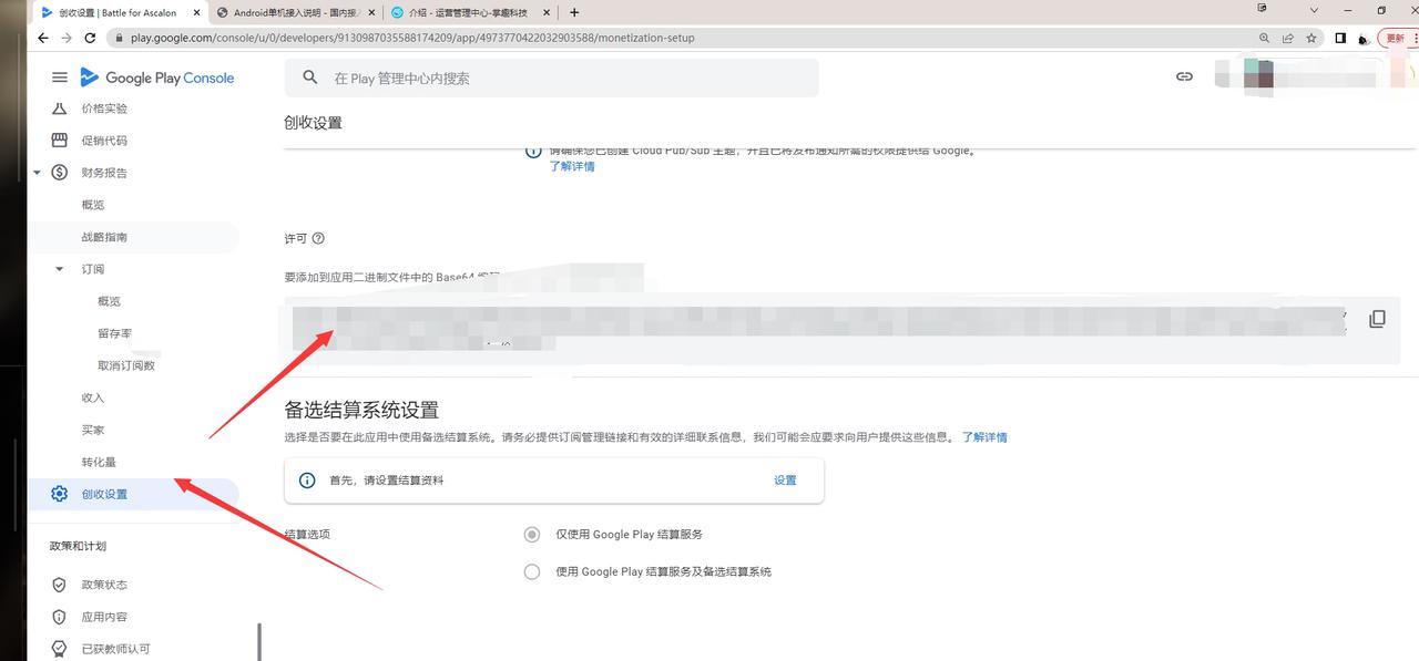 谷歌开发者后台-创收设置-许可