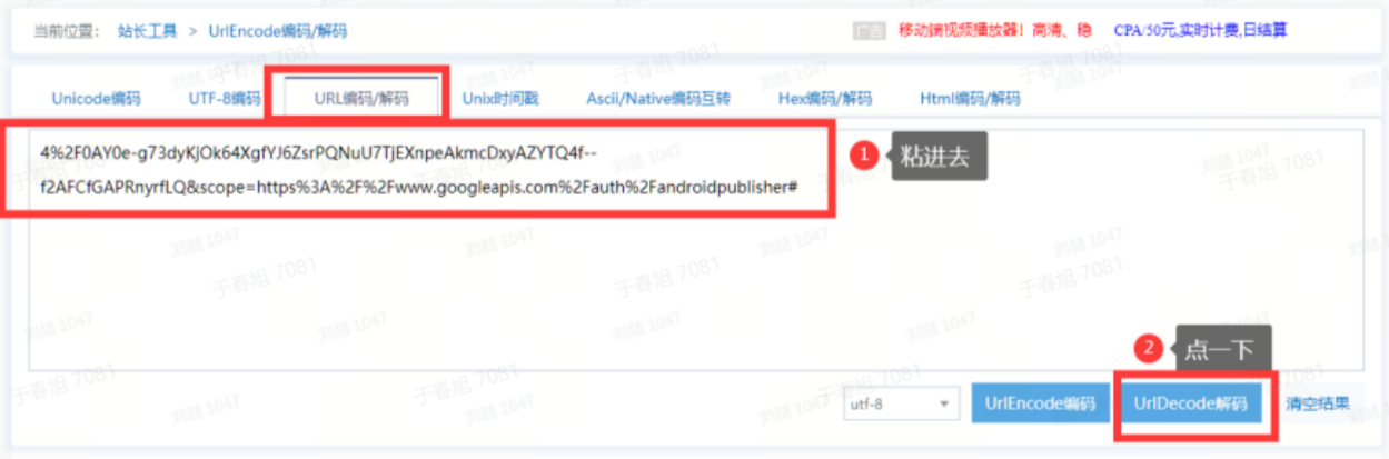 ⑤ 但如果获取的code为4%xxxxxxx的情况,请⽤下⾯的⽹址 http://tool.chinaz.com/tools/urlencode.aspx 进⾏解码,解码成功后保存下来